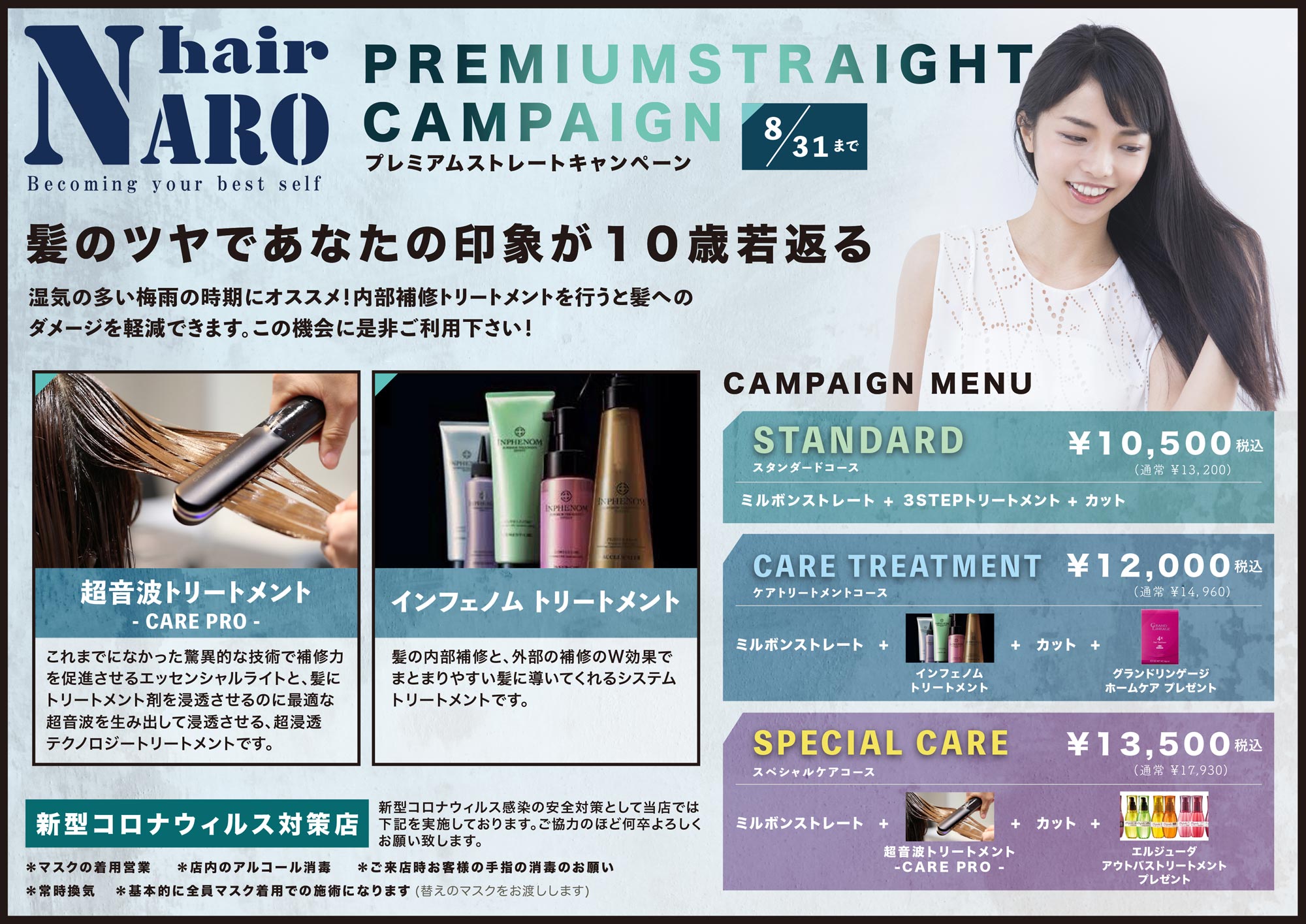 日頃よりNARO hair をご利用いただき誠にありがとうございます。お得なストレートキャンペーンを実施致します。